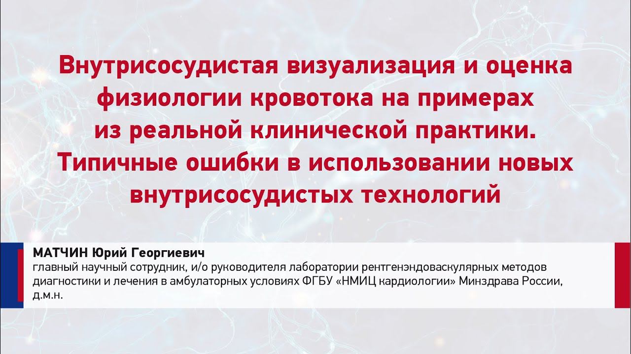 25.03.2022 Московский курс по сосудистой патологии "Новые тарифы в интервенционной кардиологии" "Внутрисосудистая визуализация и оценка физиологии кровотока на примерах из реальной клинической практики. Типичные ошибки в использовании новых внутрисосудистых технологий" Матчин Юрий Георгиевич главный научный сотрудник, и.о. руководителя лаборатории рентгенэндоваскулярных методов диагностики и лечения в амбулаторных условиях НМИЦ кардиологии им. Е.И. Чазова Минздрава России, д.м.н.