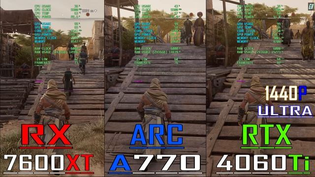 RTX 4060Ti vs RX 7600XT vs ARC A770 // PC GAMES BENCHMARK TEST || 1440P || #arca770 #rx7600xt #i714700k #rtx4060ti SYSTEM :- CPU INTEL i7 14700K MOBO Asus ROG Strix Z790 - E Gaming COOLER CORSAIR ICUE H150I ELITE GPU AMD Radeon RX 7600XT 16GB GPU NVIDIA GeForce RTX 4060Ti 16GB GPU INTEL ARC A770 16GB RAM Corsair Dominator Platinum RGB 32GB DDR5 6000MHz SSD Samsung 980 PRO 2TB PCIe 4.0 NVMe M.2 HDD WD Blue 4TB Desktop Hard Disk Drive PSU CORSAIR RMX SERIES RM1000X 1000 WATT THANK YOU FOR WATCHING-- Your support is very important, please like and subscribe to the channel. Теги: benchmark test,intel vs amd,amd vs nvidia,radeon vs geforce,1440p gameplay,1440p benchmark,1440p gaming,1080p gaming benchmark,1440p gaming benchmark,exploring benchmark,explore benchmark,benchmark,rtx 4060ti,4060ti,rx 7600xt,7600xt,4060ti vs 7600xt,7600xt vs 4060ti,intel i7 14700k,i7 14700k,14700k,4060ti + 14700k,14700k + 4060ti,arc a770 vs 7600xt,7600xt vs arc a770,intel arc a770,arc a770,a770,552.44,new driver,24.5.1,arc new driver