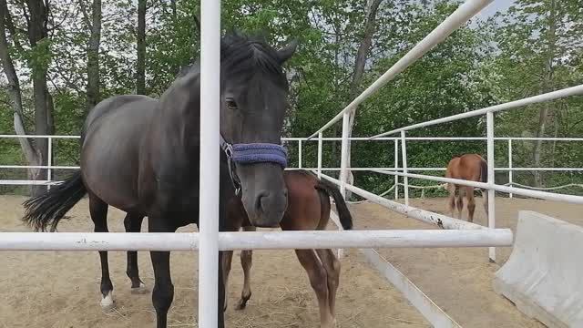 Жеребенок кормится молоком своей матери.