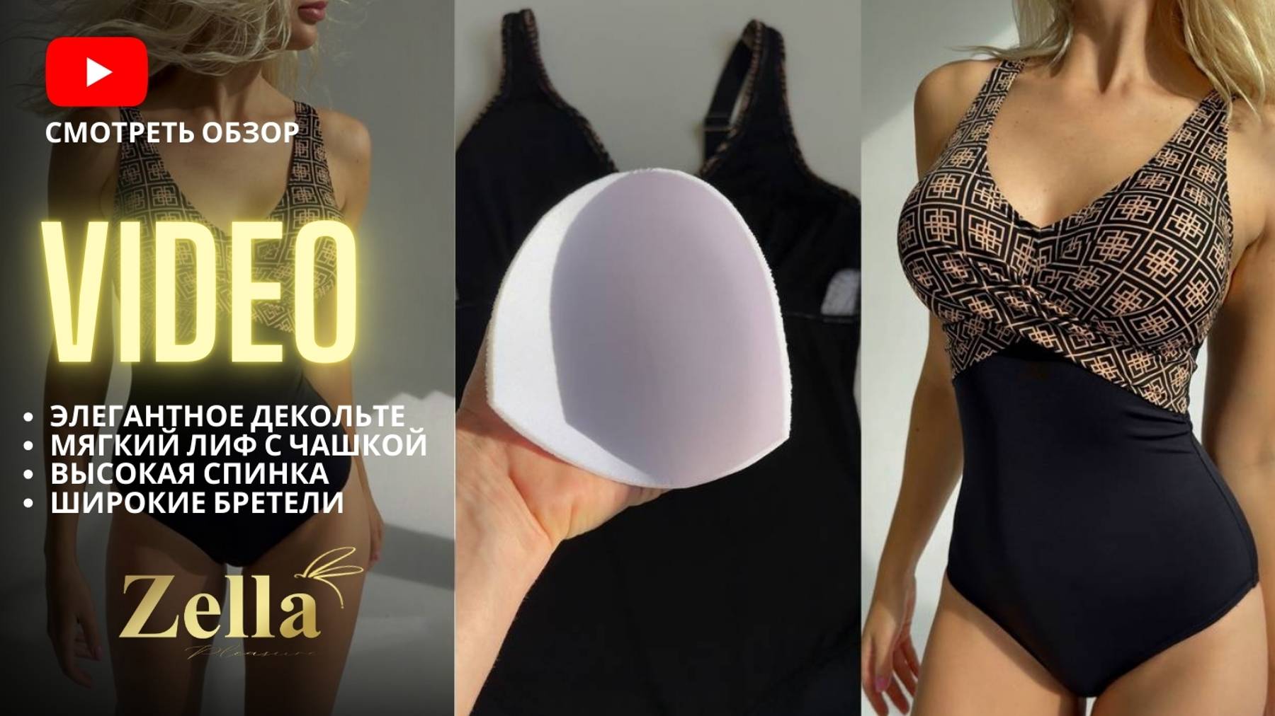 Слитный женский купальник на большую грудь. Черный элегантный купальник больших размеров. Видеообзор