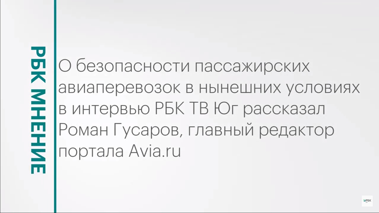 О безопасности пассажирских авиаперевозок в нынешних условиях в интервью РБК ТВ Юг рассказал Роман Гусаров, главный редактор портала Avia.ru Подписывайтесь на нас в социальных сетях: ВКонтакте: https://vk.com/rbcyug Telegram: https://t.me/rbc_krasnodar, https://t.me/rbcrostov, https://t.me/rbc_kavkaz Подпишитесь на канал РБК Юг, чтобы смотреть новые выпуски первыми!
