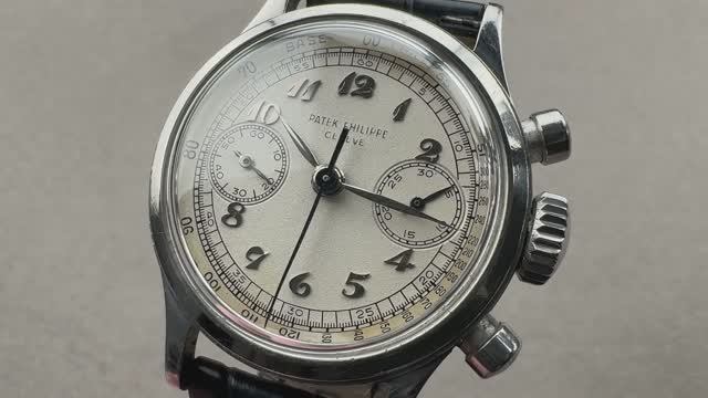 *перевести видео можно в Яндекс браузере Этот невероятно редкий винтажный хронограф Patek Philippe 1463 выполнен в корпусе из нержавеющей стали толщиной 35 мм, окружающем серебристый циферблат, на синем ремешке из кожи аллигатора с пряжкой tang из нержавеющей стали. Характеристики винтажных часов Patek Philippe 1463 включают в себя часы, минуты, секунды и хронограф. К этим часам прилагается архивная справка. Толщина этих часов Patek Philippe также составляет 13,5 мм, а расстояние от выступа до выступа составляет 42,8 мм. Для получения более подробной информации ознакомьтесь с полным обзором винтажных часов Patek Philippe 1463.
