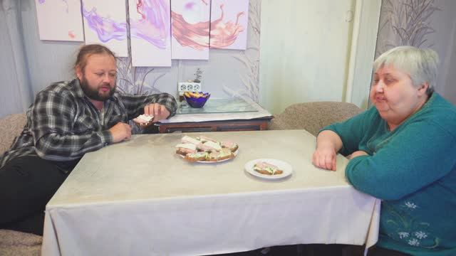 Вкусно кушает сынок мою закуску к чаю из ветчины и майонеза Показываю как её приготовить самой