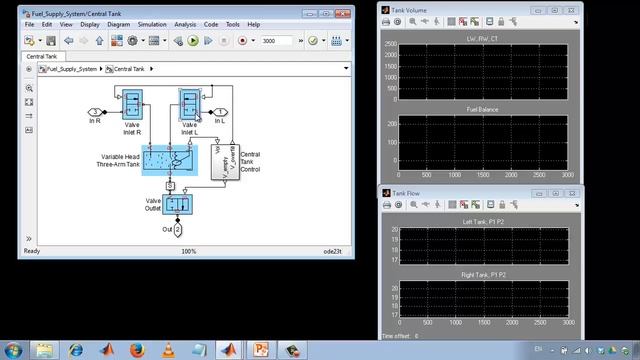 В этом примере SimHydraulics используется для определения архитектуры топливной системы, проектирования подсистемы управления и тестирования системы при различных внешних воздействиях и сценариях работы.