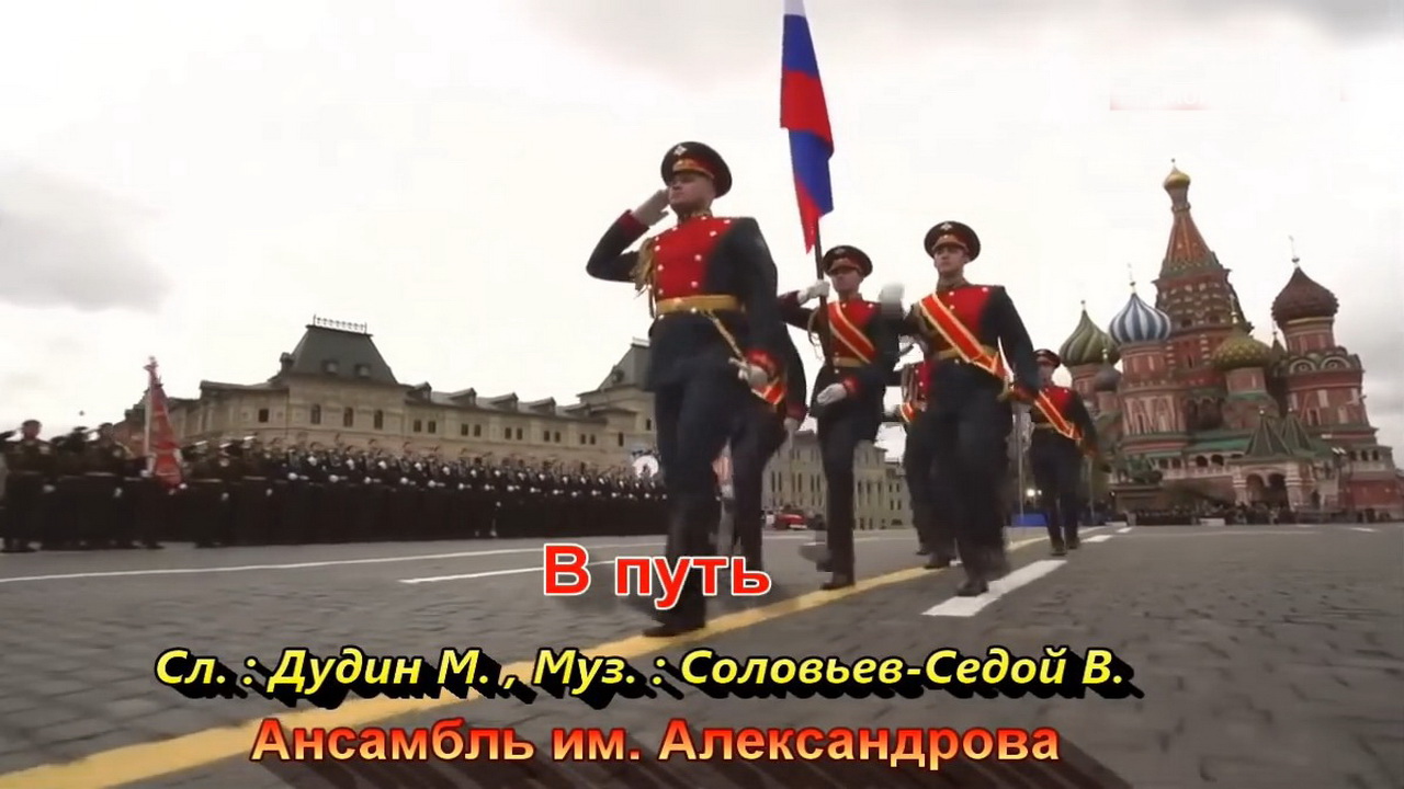 "В путь!" - муз.Василий Соловьёв-Седой, слова Михаил Дудин. Исполняет Ансамбль им. Александрова. Главный строевой марш в Советской Армии. Удачи!