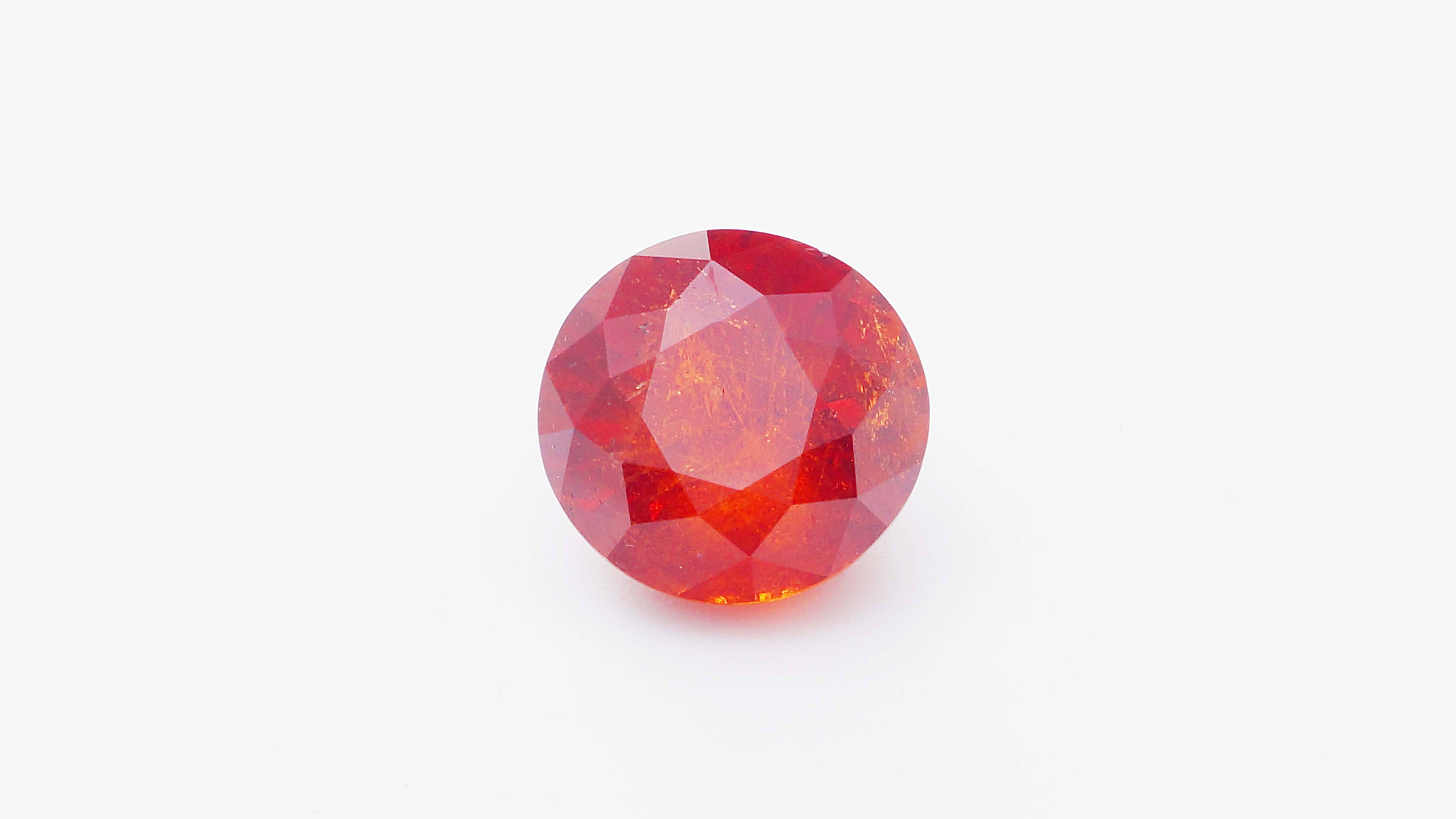 0322GN Наименование: Натуральный Гранат Спессартин. Вес: 10.26 кт. Размеры: 11.91 х 11.42 х 8.92 мм. Огранка: Круг. Чистота: Заметные включения. Цвет: Оранжевый. Тип: Гранат. Облагораживание: Отсутствует. Месторождение: Замбия.