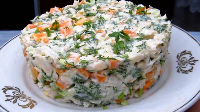 Салат Необычный, очень напоминает вкус раков. Крабовый салат есть, теперь будет и раковый.