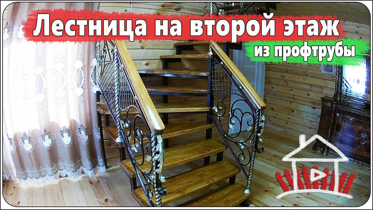 Лестница на второй этаж из профтрубы , сделано в деревне