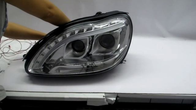 CrazyTheGod W220 1998-2005 Projector Headlight Headlamp R8Look CHROME for Mercedes-Benz RHD