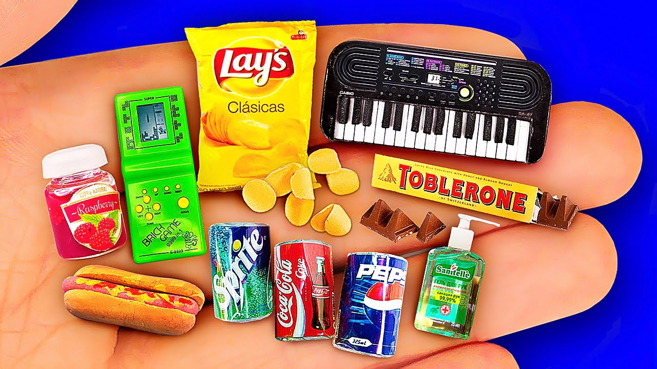 Как сделать 13 РЕАЛИСТИЧНЫХ МИНИАТЮРНЫХ поделок своими руками ~ ПРЕДМЕТЫ, ЕДА И НАПИТКИ