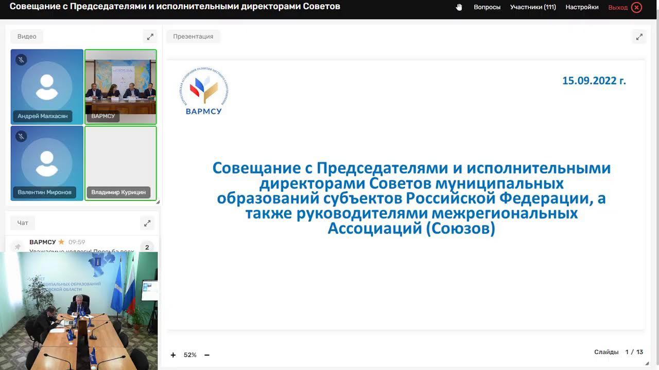 Совещание с руководителями советов МО субъектов РФ
