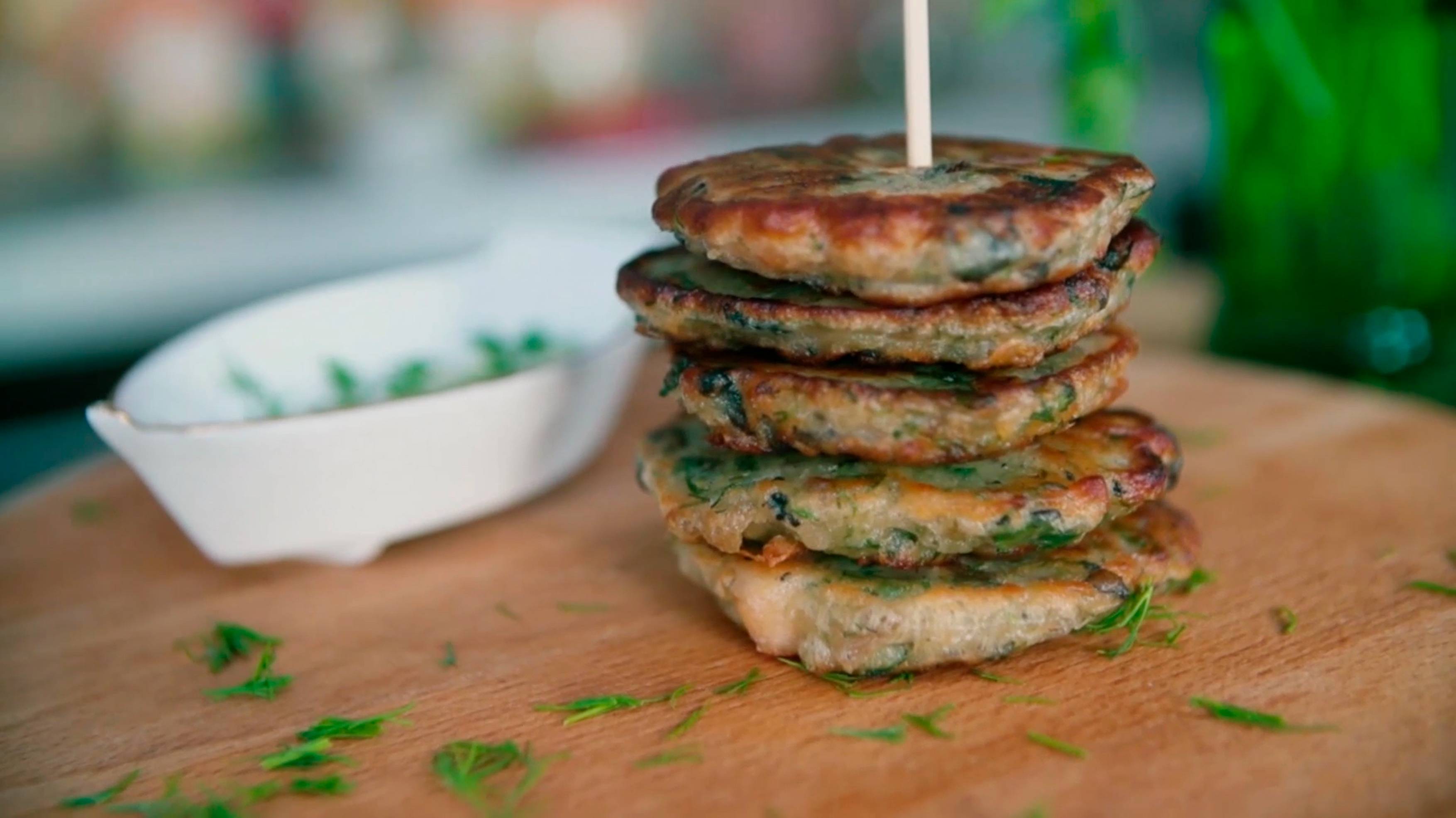 Оладьи с курицей и грибами
