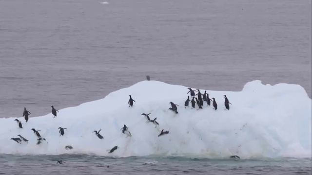 В Антарктиде засняли, как большая стая пингвинов захотела отдохнуть на одной льдине