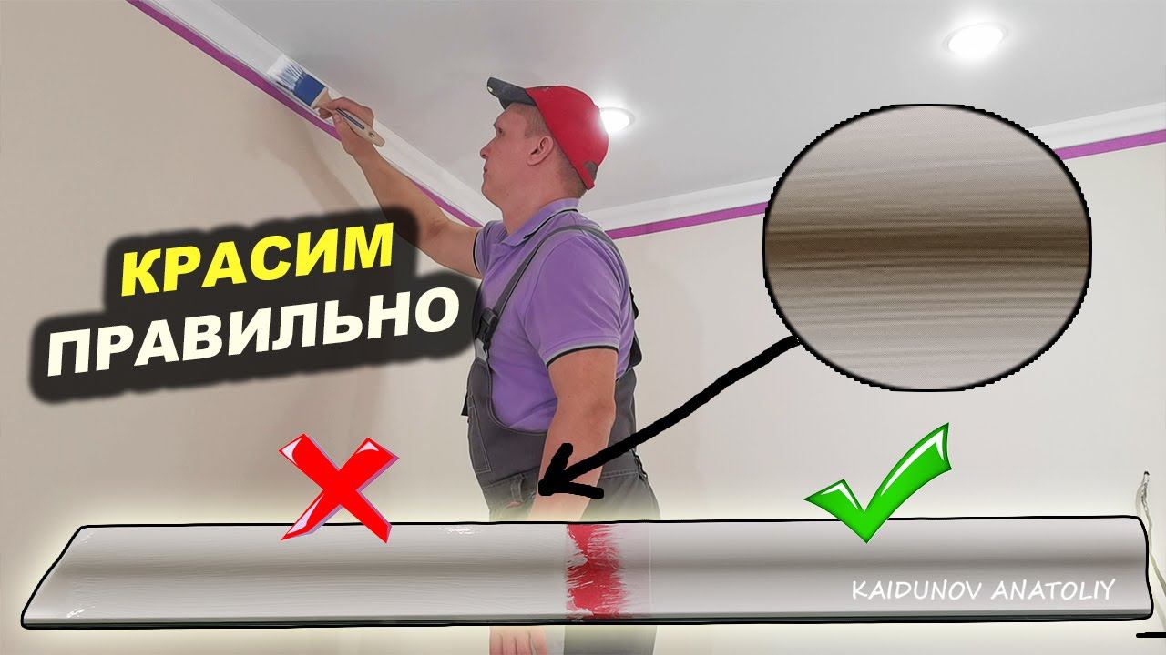 Как покрасить потолочный плинтус кисточкой без полос?