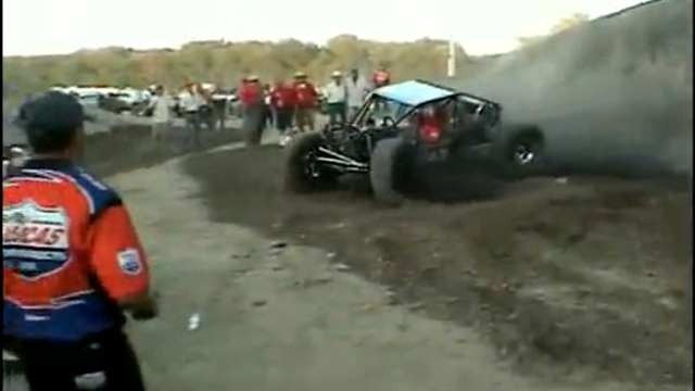 После неудачного трюка у багги отказали тормоза и он едва не передавил всех людей, которые наблюдали за этим зрелищем.