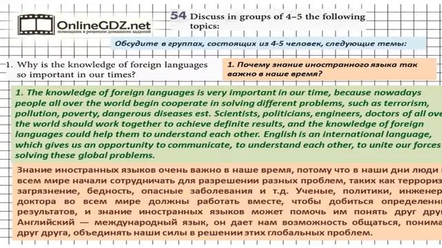 Другие решения смотри тут: https://urokitv.net/49-angliyskiy-yazyk-7-klass-biboletova-m-z Urokitv.net это школьные учебники и решебники с 1-го по 11-й класс школы. Ждем ваших предложений и пожеланий. Если вам нравится, то что мы делаем расскажите про нас своим друзьям и одноклассникам. В упражнении 54 нужно поработать в группах и обсудить, почему знание иностранных языков важно в наше время. Если вы хотите без ошибок сделать это задание, посмотрите наше видео. Unit 2 Section 6 Задание №54 - Английский язык "Enjoy English" 7 класс (Биболетова)