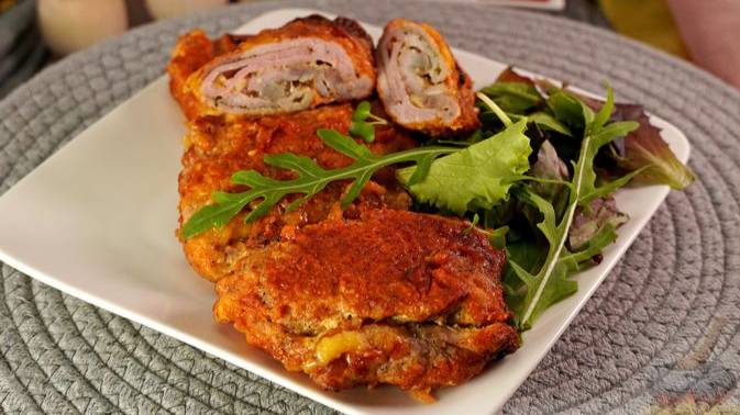 Лабанцпеченя – классическое венгерское блюдо, которое представляет собой отбивные, фаршированные сыром и ветчиной. Отбивные с начинкой обваливаются в смеси муки и паприки, а потом запекаются в духовке. Благодаря оригинальной панировке отбивные получаются яркими и интересными на вкус. #ОтбивныесСыромИВетчиной #Лабанцпеченя #СвиныеОтбивные #ОтбивныеизСвинины #ОтбивныевДуховке