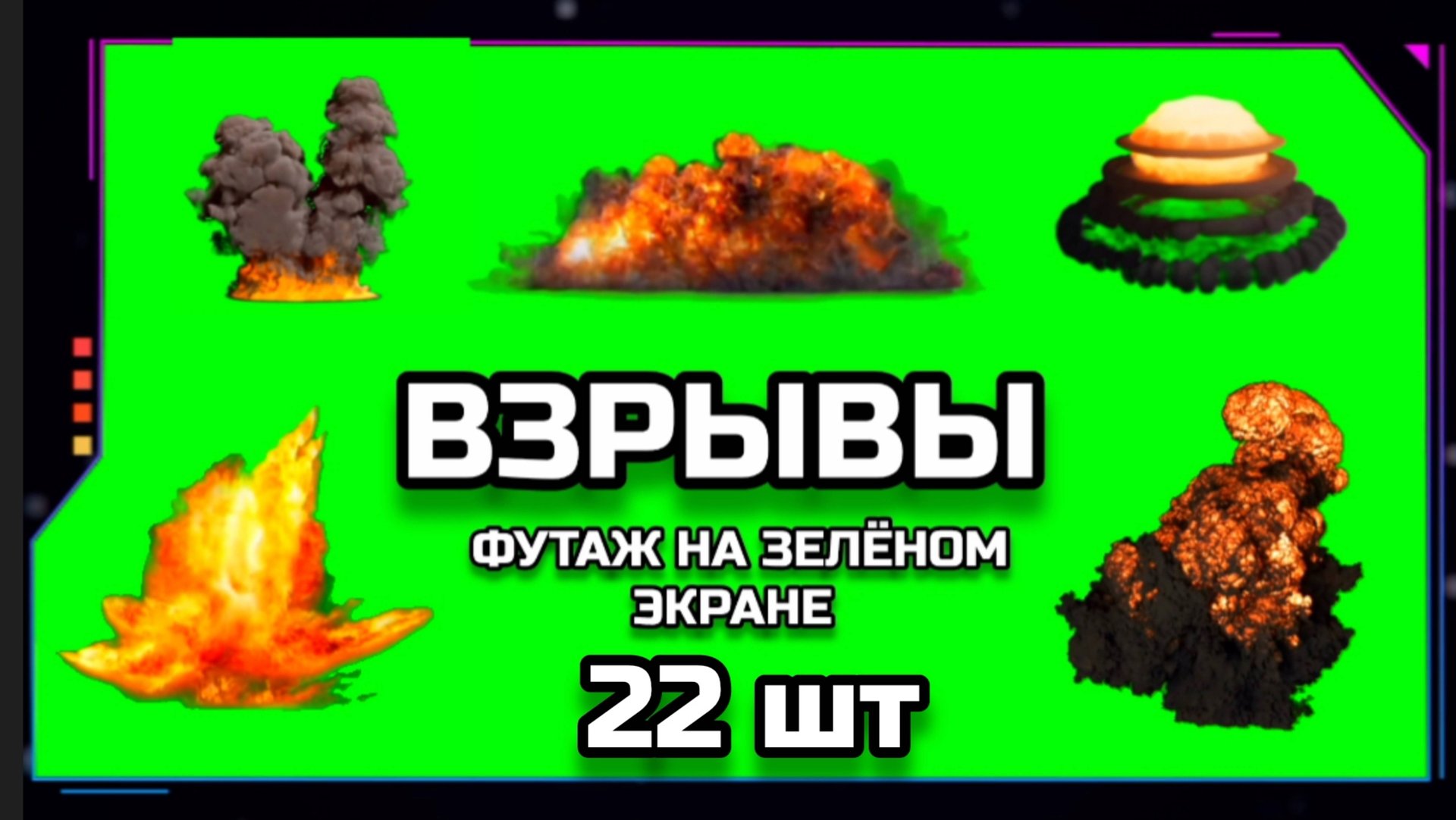 ВЗРЫВЫ 22 штуки видео GREEN SCREEN футаж. ХРОМАКЕЙ АНИМАЦИЯ на зелёном фоне.