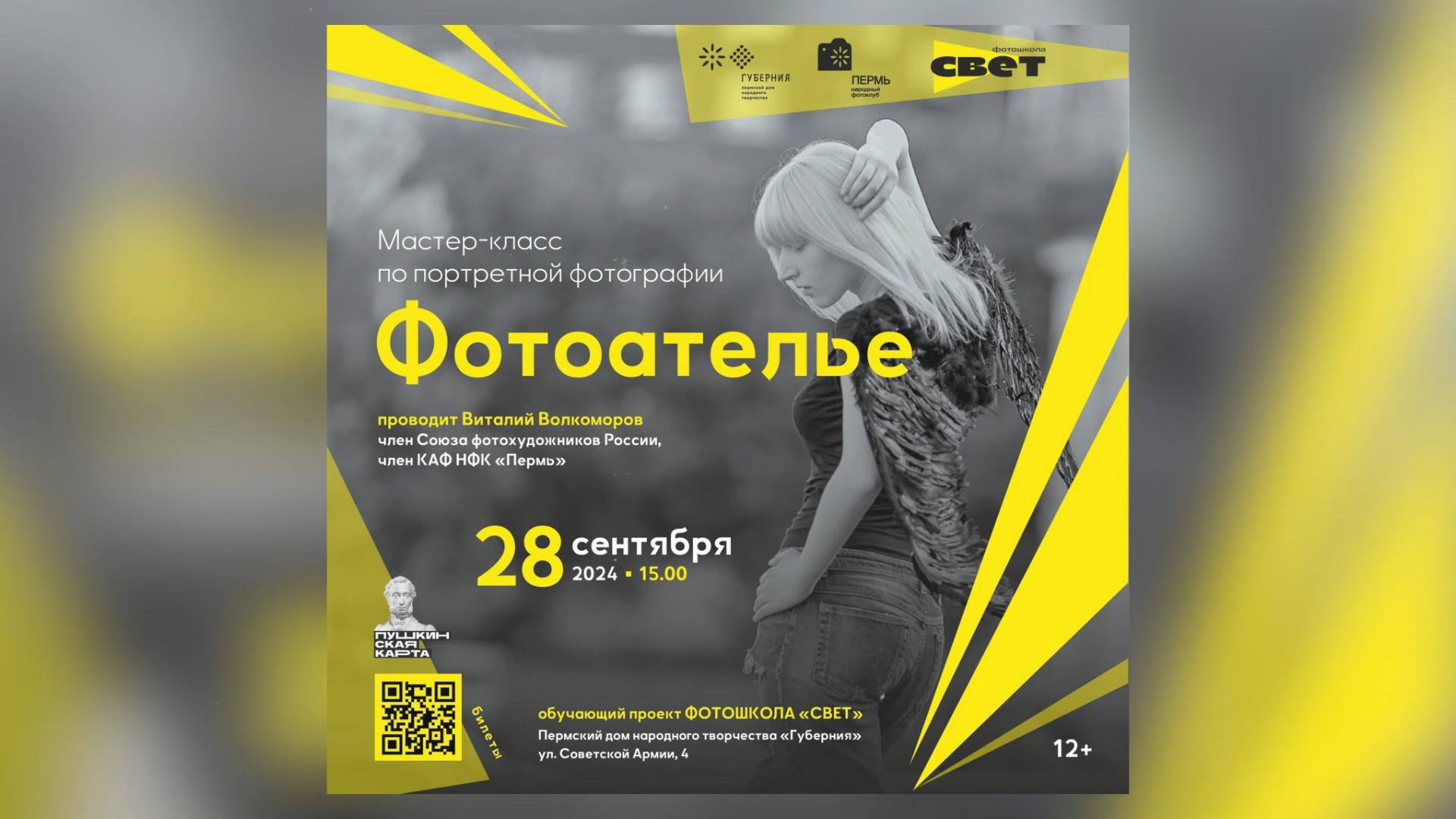 #Пермь #мастеркласс #портретнаяфотография #фотошколаСвет #ПДНТ #Губерния #ПДНТГуберния #НародныйфотоклубПермь #нфкПермь #видеомонтажназаказ #слайдшоуназаказ Мастер-класс как синтез искусств. Такой подзаголовок можно было бы дать мастер-классу «Фотоателье», который прошёл в «Губернии» в минувшую субботу, 28 сентября 2024 года. А проводил его ведущий преподаватель фотошколы «Свет» Виталий Волкоморов. Участники мастер-класса постигали искусство создания фотопортрета. А для этого необходимо научиться многому: разбираться в светотехнике, уметь устанавливать свет, создавать художественный образ. На мастер-классе речь шла и о техническом мастерстве фотографа, который решается создавать фотопортреты, и об эстетической составляющей портретной съёмки. Как отмечают очевидцы, волшебство начиналось с порога, потому что участники мастер-класса воочию увидели, как изменение света меняет образ. Подобранная музыка также помогала создать образ и настроение и сделать снимки актёров Сергея Никитина и Надежды Гущиной, которые стали моделями для фотопортретов. У каждого мастера свой стиль, неповторимый почерк, и общение с таким профессионалом, как Виталий Волкоморов, задаёт направление творческой деятельности, даёт понимание, как создавать фотопортрет, учит искусству создания фотообраза. И вот как отзываются о мастер-классе его участники: - Большое спасибо за интересный МК, особенно за возможность потренировать новые навыки! - Просто замечательный мастер-класс. Много интересных знаний. Сделали отличные кадры, т.к. научили как ставить свет. Виталий очень интересно рассказал – и много фишек! - Мне бы хотелось приехать снова! Наконец-то я увидел единомышленников. Ещё уютная атмосфера, музыка подобрана для фотосъёмки. Интересно рассказывает преподаватель. И главное, что предлагают пофотографировать и ставить свет! Классно! Спасибо!