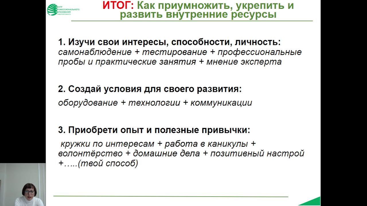 Вебинар для обучающихся с ОВЗ "Внутренние ресурсы для профессионального развития"