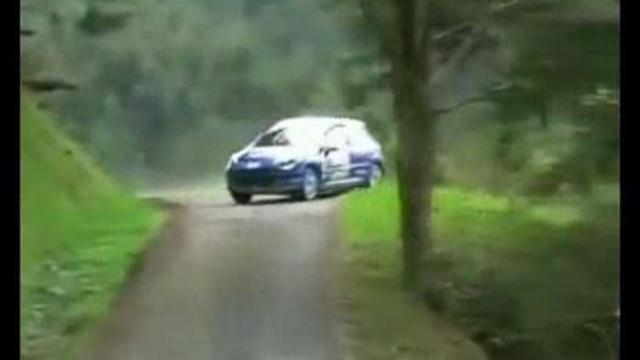 автомобиль на каком то ралли не вписался в поворот,его развернуло боком и вынесло прямо в дерево