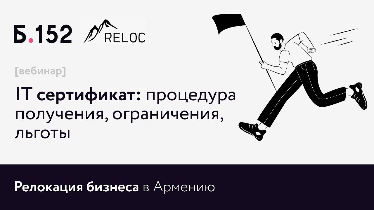 Запись вебинара компании Б-152: «IT-бизнес в Армении: процедура получения IT-сертификата, налоги, льготы» 00:00 - Что такое IT-сертификат? 03:20 - Кому выдают сертификат? 04:38 - Какие виды деятельности для IT-сертификата? 06:19 - Как получить сертификат? 07:45 - Отчеты 08:57 - Практические действия, чтобы не было отказов и чтобы сертификат не потерять 13:00 - Про учредителей 14:54 - Кому чаще дают добро на получение сертификата? 20:40 - Нужно ли физически находиться в Армении после получения сертификата? 23:18 - Налогообложение 25:30 - Ответы на вопросы слушателей Спикеры: - юрист IT и IP бизнеса Севан Авалян (ReLOC, Б-152) - налоговый консультант Республики Армения Вардан Хечян Оставить заявку можно на сайте: https://релокациявармению.рф/ Подписывайтесь на Telegram-канал: https://t.me/relocateAR Статья на vc с подробными объяснениями: https://vc.ru/migrate/379746-faq-po-r... Подробнее о нас: https://b-152.ru/