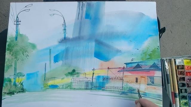 Городская зарисовка Пленэр Акварель Рисую и рассказываю Urbansketch Real times Drawing and learning