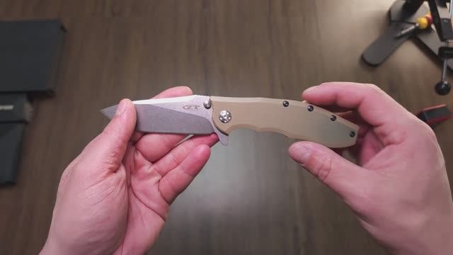 120. Заточка складного ножа ZT сталь Elmax, гальваника Вектор, для начинающих и не только.