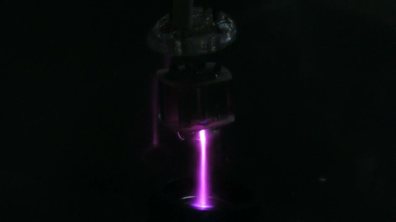 ТТВ №14: катод лампы 6Х2П на терменале тр. Тесла + ВЧ ВН снизу при увеличении вакуума