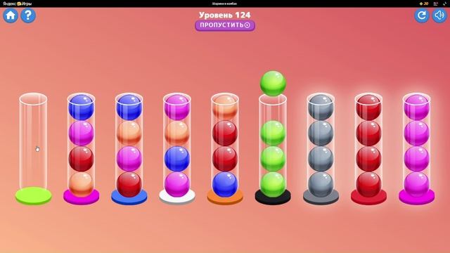 Шарики в колбах уровень 124