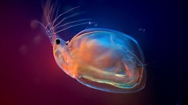 ? Дафнии или морские блохи! Род планктонных неокеанических ракообразных из надотряда ветвистоусых (Cladocera). На видео - представитель рода Симоцефалус.