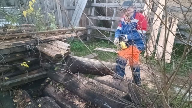 Готовлю пиломатериал из бревен ясеня, для изготовления сундуков. Пилю ясень электропилой.