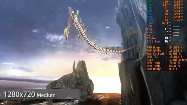 Recorded with Radeon ReLive, 1-3 fps without recording Acer Aspire 3 A315-42 AMD Ryzen 3 3200U Radeon Vega 3 2GB VRAM 8GB 2400 MT/s Dual Channel (4x2) RAM 1 TB SATA HDD + 128GB M.2 NVMe SSD Condition: Radeon Software 22.3.2 NimeZ Driver HDD as game storage AC Plugged in Best Performance mode 25W TDP Configured using AATU Windows 10 Ghost Spectre ============================================================================== Note: This benchmark result is only related to 25W TDP. In default condition, you will get higher framerate result in different laptop with better cooling or you will get lower framerate result with worse laptop cooling. RAM configuration also make a significant framerate difference, especially dual channel and single channel ram. All the software I use for benchmark like MSI Afterburner, HWINFO64, and Radeon ReLive, all of them reduce some framerate especially Radeon ReLive. ============================================================================== My discord server: https://discord.gg/NSPekvxYvJ Other games tested on AMD Ryzen 3 3200U : https://youtube.com/playlist?list=PLvJVBvbaBIzdADSAt-GpNgh7pD48ZDWPG Bayonetta ryzen 3 3200u vega 3 0:00 Intro 0:07 Graphics Setting 0:22 1280x720 Low 2:52 1280x720 Medium 5:22 1280x720 High 8:22 Outro