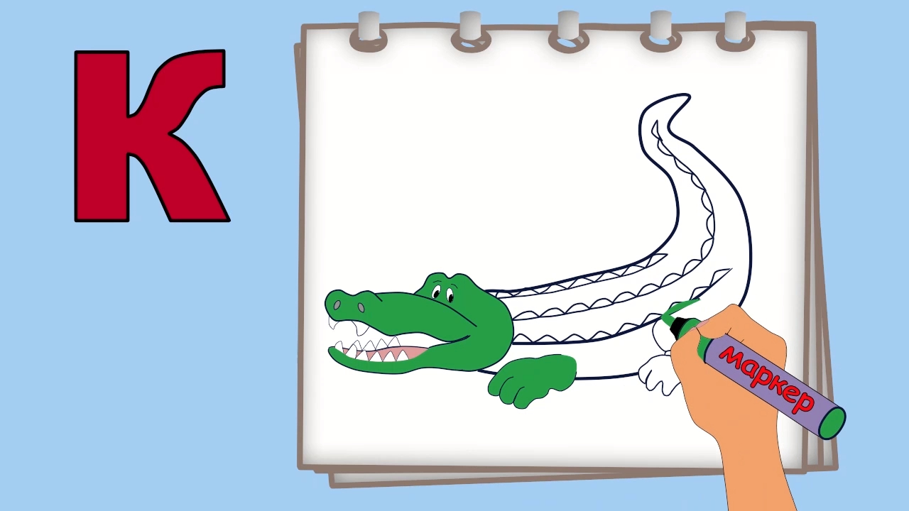 Сегодня мы научимся писать печатную букву К, затем раскрасим её и нарисуем крокодила , потому что крокодил начинается на букву К. Все мультфильмы нашего канала, направлены на развитие речи, мышления, внимания, воображения, памяти, а так же на воспитание интереса к учебе.