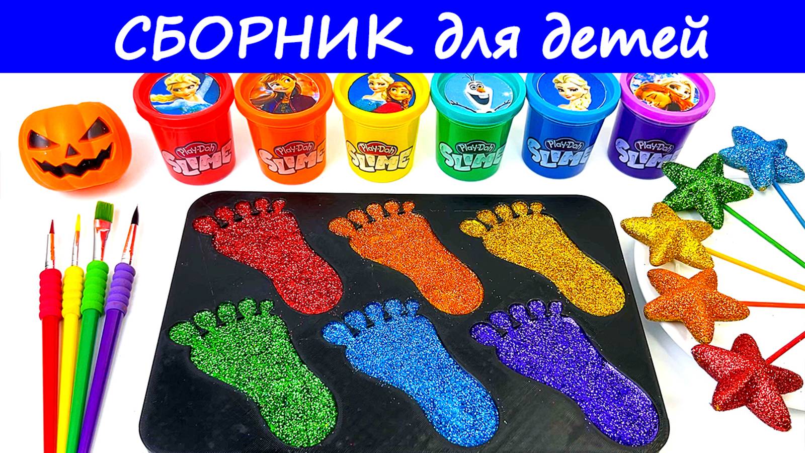 Сборник Для малышей мультики АСМР. Смешные игрушки. Разноцветные слаймы