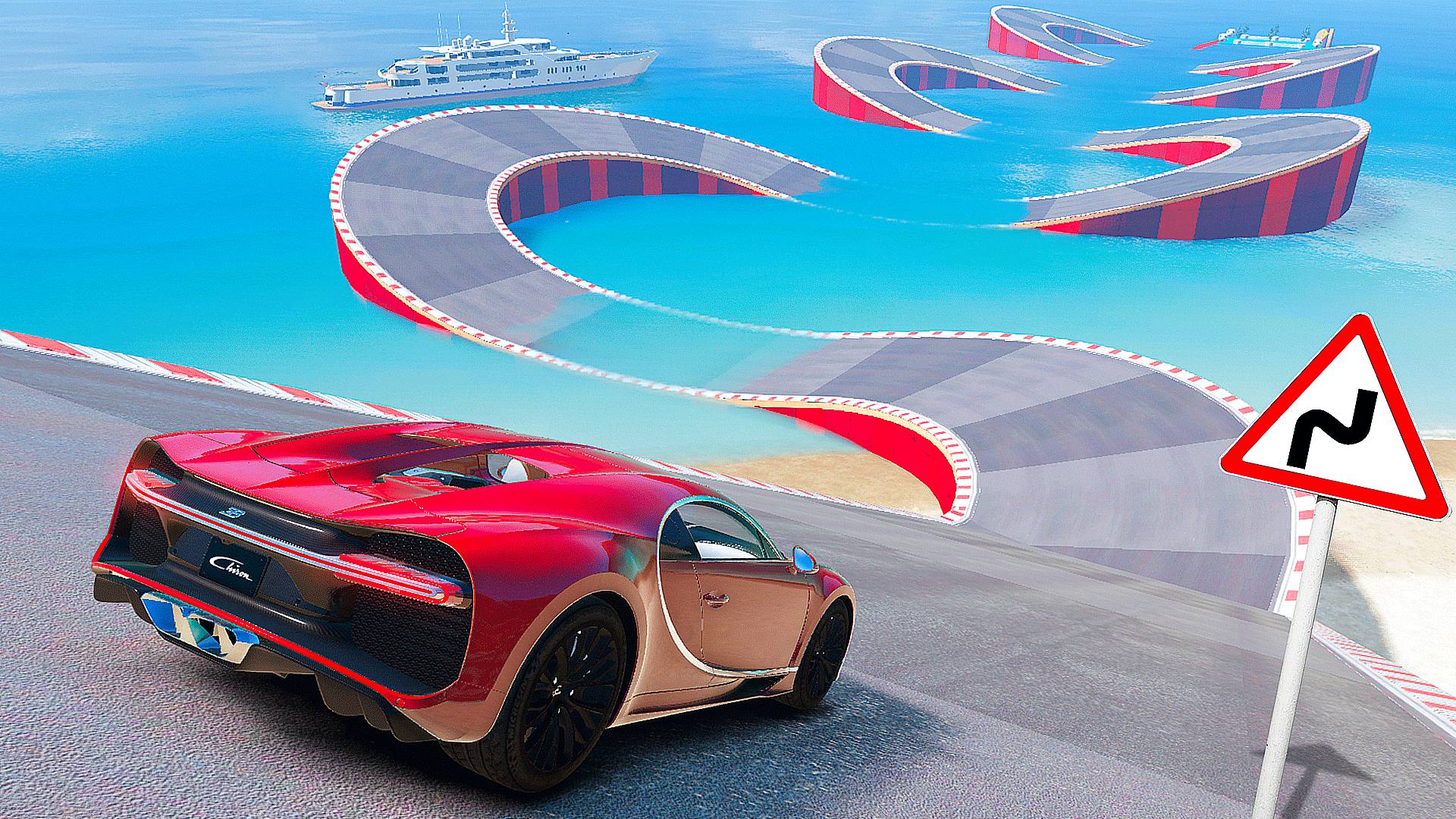 ПРОЕХАЛ ВОЛНИСТУЮ ДОРОГУ с ЛУЖАМИ на БУГАТТИ ШИРОН в ГТА 5 МОДЫ - ЭКСПЕРИМЕНТЫ в GTA 5 MODS