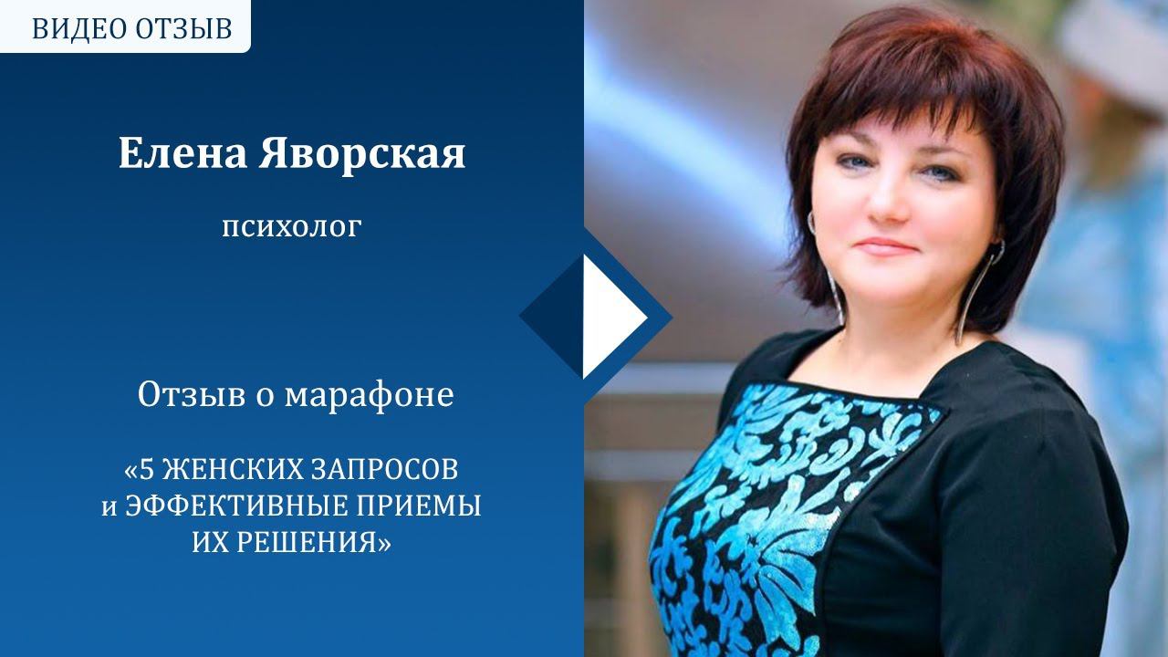 Отзыв Елены Яворской о марафоне«5 ЖЕНСКИХ ЗАПРОСОВи ЭФФЕКТИВНЫЕ ПРИЕМЫ ИХ РЕШЕНИЯ»