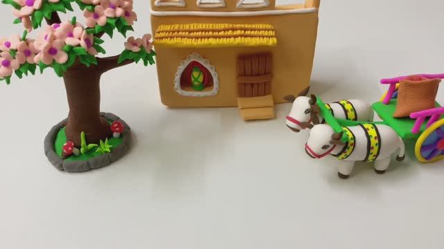 Лепка из пластилина - миниатюрный деревенский домик, кухонный гарнитур, ручной насос, повозка, дере