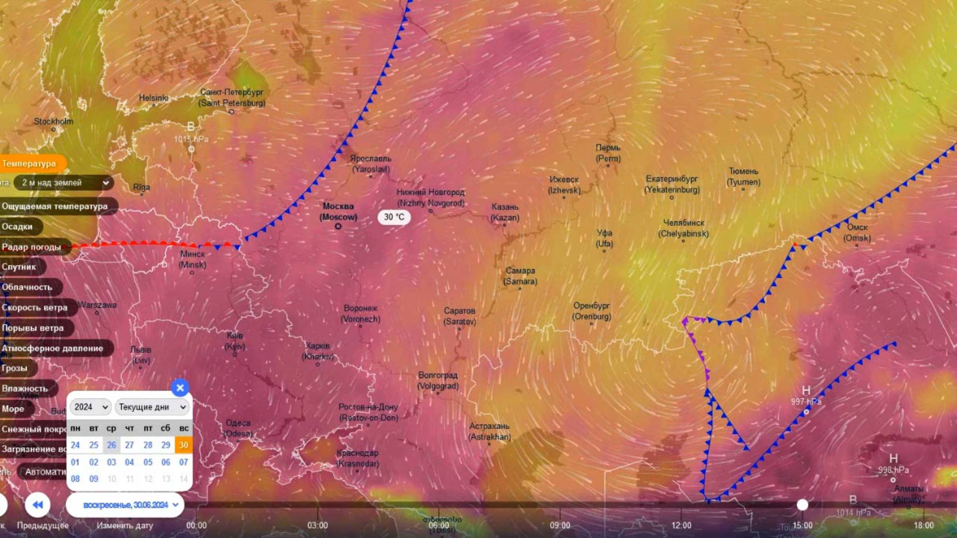 30 июня на значительной территории ЕТР наступит жаркая погода. Прогноз погоды