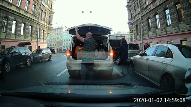 Несколько автомобилистов начали сигналить остановившейся перед ними иномарке Infinity. Водитель машины решил подобрать женщину-пассажира, полностью заблокировав движение на трассе. Другие автомобилисты начали терять терпение, сигналить еще сильнее, и, наконец, из Infinity вылез мужчина, выстрелил один раз в воздух, предположительно, из пистолета, сел спокойно в машину и уехал. Момент выстрела попал на камеру видеонаблюдения. Запись проверяет полиция. #стрельба #пробка #питер