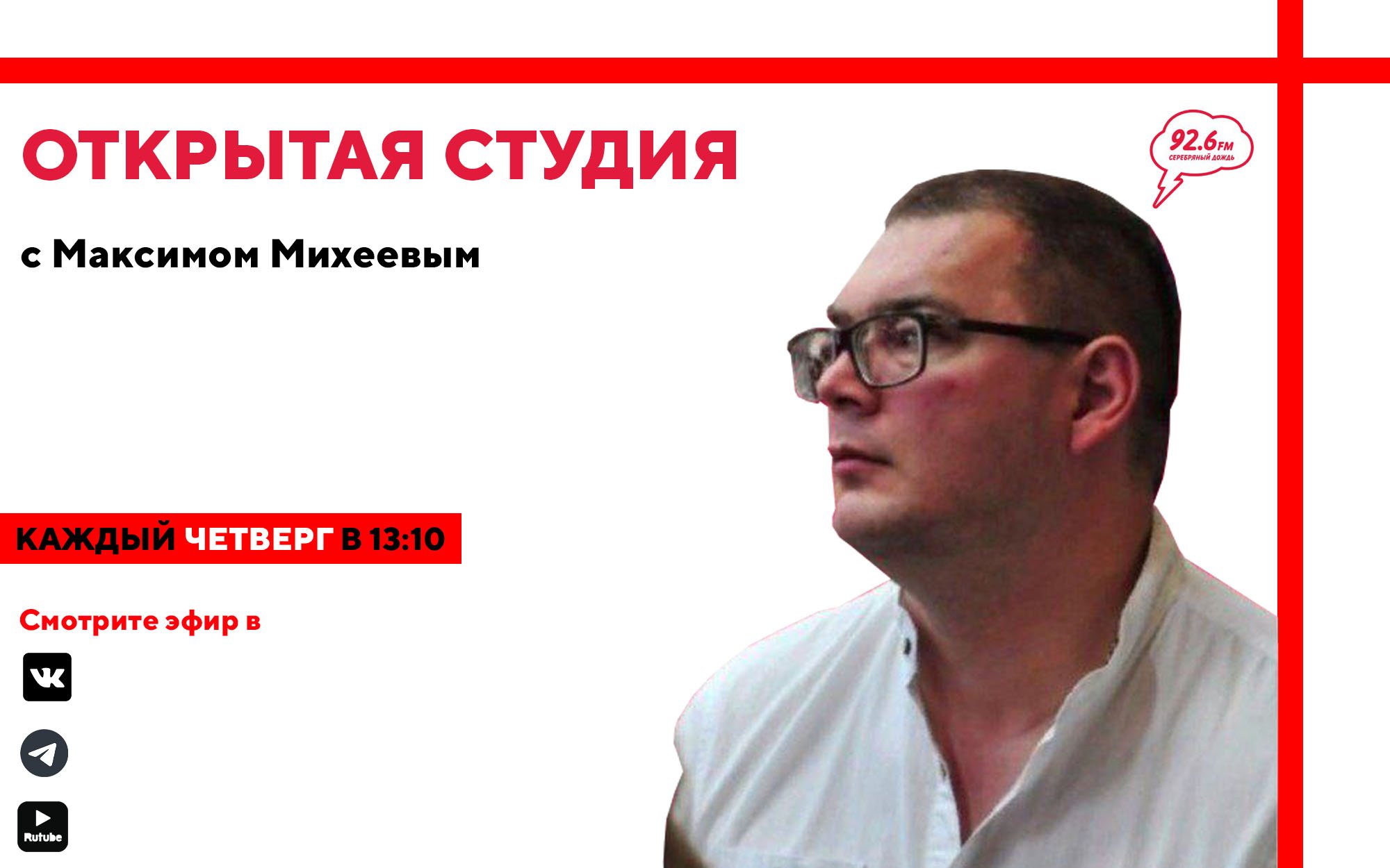 Четверг, 12 октября, в 13:10, на радиостанции «Серебряный дождь. Ставрополь» программа «ОТКРЫТАЯ СТУДИЯ» с экономическим обозревателем. ?? В студии наш колумнист Максим Михеев! И мы продолжаем цикл передач про умение договариваться. Сегодня поговорим о том, как добиваться своего без конфликтов и уступок. ? Слушайте нас в FM диапазоне 92.6 и в приложении «SILVER RAIN» ☔ Наш Telegram: https://t.me/silverstav Наш ВК: https://vk.com/silver_rain_stav Наш RuTube: https://rutube.ru/channel/31357919/ ? Присылайте вопросы в What's App или Telegram на номер +7 (928) 35 25 92