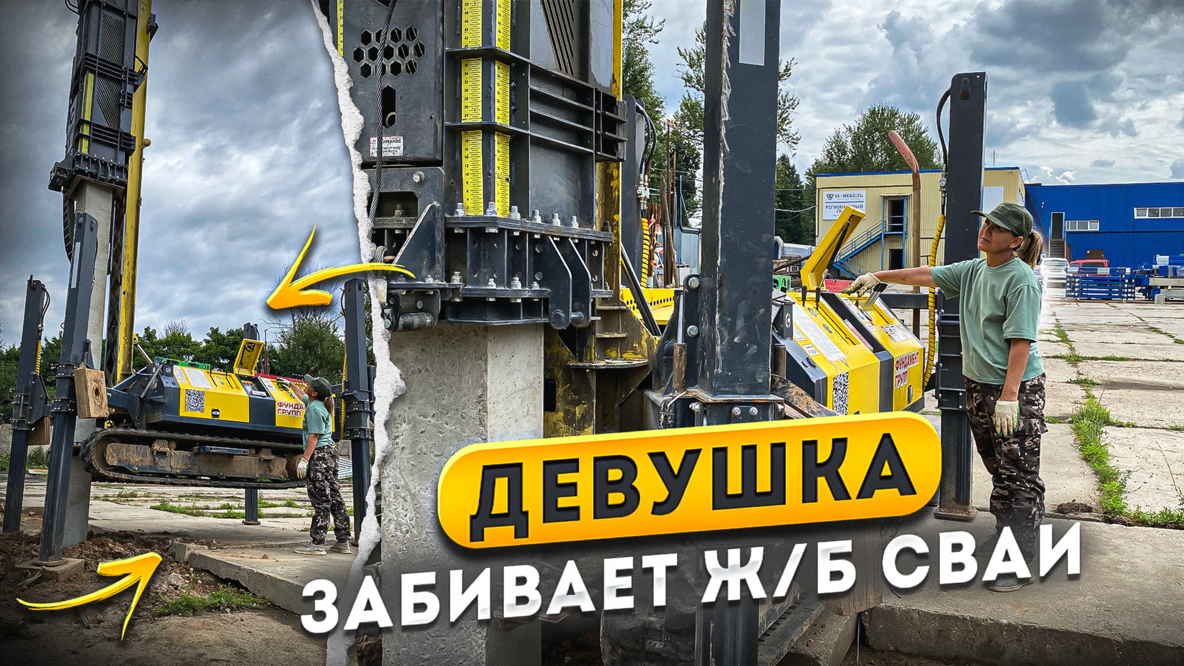 Девушка забивает ж/б сваи #фундаментгрупп #жбсваи #свайноростверковыйфундамент #свайныйфундамент