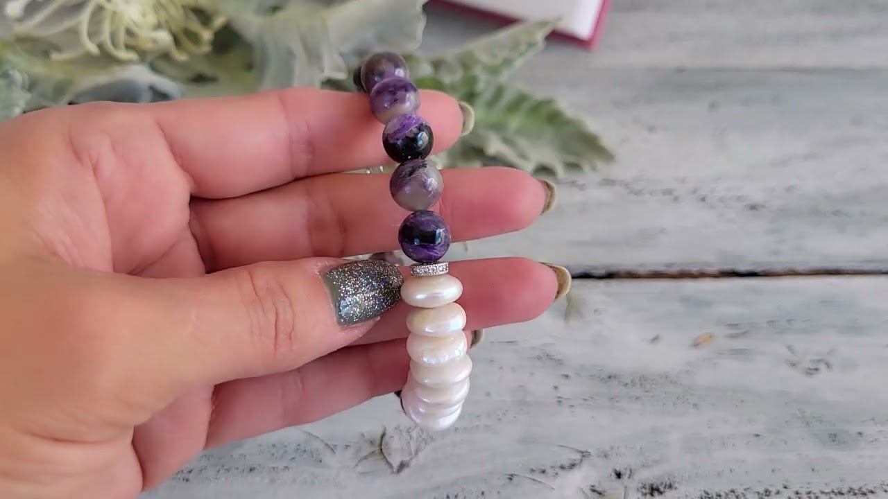 Браслет из чароита и жемчуга барокко