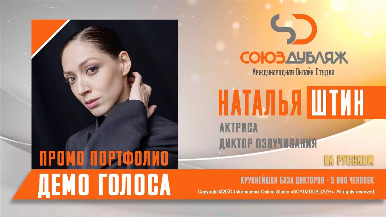 #СоюзДубляж #БазаДикторов #Озвучка ✔️Наталья Штин, актриса-диктор озвучивания. Международная Онлайн-Студия "СОЮЗДУБЛЯЖ" - профессиональная озвучка и дубляж. ▪️Рабочая группа в Телеграм: https://t.me/soyuzdubliazh ▪️Контакт для связи: https://t.me/SoyuzAdmin ▪️Подпишись:https://www.youtube.com/c/SOYUZDUBLIAZH ▪️Сайт: https://www.soyuzdubliazh.com/ Лучшие голоса для вашей аудиорекламы и видеороликов. База дикторов - 5 000 человек, профессионального уровня на ENG| FR| TR| RU| ISR| AZ| UA| KZ| UZ| языках. Мужские и Женские топовые голоса для озвучки любых проектов, таких как: Рекламы, Презентации, Фильмы, Сериалы, Игры, Мультфильмы, ТВ Шоу, Аудио-видео визитки. ✔️Сотрудничая с нами вы получаете свой проект под ключ, не выходя из дома или офиса. Наша слаженная команда из лучших дикторов, актёров озвучивания, режиссёров и звукорежиссёров в кратчайшие сроки озвучат или отдублируют ваш заказ на профессиональном уровне. Образцы работ нашего портфолио вы сможете посмотреть на канале СОЮЗДУБЛЯЖ. ВНИМАНИЕ: ✔️Мы приглашаем специалистов озвучки к сотрудничеству в нашей команде. Вы можете пройти по ссылке в наш телеграм канал и связаться с Админом для обсуждения. ✔️Всем заказчикам подобных медиа проектов по озвучки и дубляжу фильмов, сериалов, документалок обращаться непосредственно к Админу Телеграм группы СОЮЗДУБЛЯЖ, пройдя по ссылке: Проходи по ссылке: https://t.me/soyuzdubliazh International Online-Studio SOYUZDUDLIAZH presents a highly professional approach in voice-over and dubbing. ▪️Our working group https://t.me/soyuzdubliazh ▪️Chief manager https://t.me/SoyuzAdmin ▪️Follow https://www.youtube.com/c/SOYUZDUDLIAZH ▪️Web: https://www.soyuzdubliazh.com/ We offer You the best Voices for your Audio commercials and Video`s. Our Database contains over 5 000 voices of native speakers and high-class foreign language specialists in ENG| FR| TR| RU| ISR| AZ| UA| KZ| UZ|. Male & Female top level voices for all the variety of dubbing projects such as commercials, presentations, movies, TV-series, video and computer games, cartoons, TV-shows, audio & video portfolio’s – all in one place. As your business partner we guarantee a turn-key project without you leaving your house or office. Our target is to make sure that the dubbing of your project is made as quick as possible by a well-coordinated and professional team of the best speakers, film and sound directors. To whom it may concern! We invite dubbing specialists to join our team. Please contact our manager on Telegram https://t.me/soyuzdubliazh