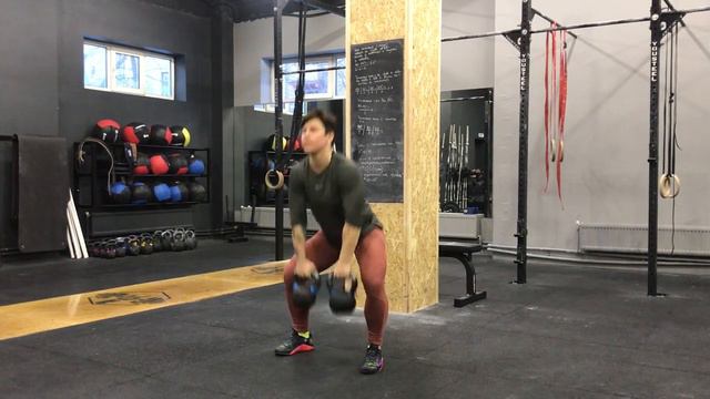 Подъем 2 гирь с пола на грудь