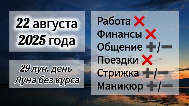 Лунный день 22 августа 2025 года