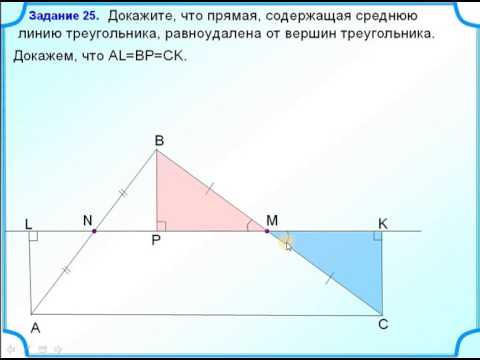 Докажите, что прямая, содержащая среднюю линию треугольника, равноудалена от вершин треугольника.