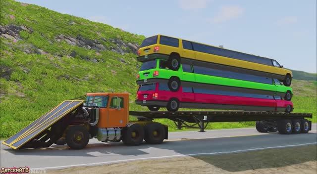 Мультики для детей Лимузин и Машины vs Глубокая Вода! Спасение на Грузовике