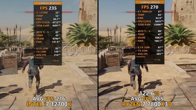Intel Core i7 12700K (DDR4) vs AMD Ryzen 7 7800X3D - Test In 15 Games =======(Timestamps)======= 0:00 12700K CPU-Z Bench Test 0:53 7800x3D CPU-Z Bench Test 1:45 Hogwarts Legacy 2:29 A Plague Tale Requiem 3:12 God Of War 3:53 Starwars Jedi Survivor 4:37 Counter Strike 2 5:16 Hitman 3 5:57 Assassin Creed Mirage 6:39 Cyberpunk 2077 7:28 PUBG 8:08 Red Dead Redemption 2 8:52 Spider Man Miles Morales 9:35 Forza Horizon 5 10:18 Spider Man Remastered 11:00 Warzone 11:47 The Last Of Us Part I 12:40 Geekbench Score =======(MY PC SPEC)======= PC 1: ◆ Mobo: Asus Rog Strix B660-A Gaming Wifi D4 Not Same: https://amzn.to/3RkBE3C ◆ CPU 2: Intel Core i7 12700k Processor https://amzn.to/3UUDfR7 ◆ GPU : Galax RTX 4070 Ti Super 16GB GDDR6x - EX Gamer White ◆ Ram: Corsair 4x8GB DDR4 3600mhz Ram https://amzn.to/46QicS5 ------- PC 2: ◆ Mobo : Asrock x670E PG Lightning https://amzn.to/49YyKJ9 ◆ Processor : AMD Ryzen 7 7800x3D https://amzn.to/49UxeYt ◆ Ram : Corsair (2x16GB) 6200MHz DDR5 https://amzn.to/4dhMcLc ◆ SSD: Samsung 500GB SSD https://amzn.to/45zaTxq ◆ OS : Windows 10 - Version 22H2 ◆ SSD: XPG GAMMIX S70 Blade 1TB M.2 Gen 4 https://amzn.to/3uy80k1 ◆ PSU: DeepCool PQ850M 80PLUS Gold (850w) https://amzn.to/4bpiovb ◆ Logitech Gaming Mouse https://amzn.to/3lB3vAi No Additional cost To You. I'll earn commission on qualified purchases. Use these Links for buying and help me to earn. =======(Social Media)======= Instagram ► https://www.instagram.com/gaming_bench/ Facebook ► https://www.facebook.com/Gaming-Bench-109041743952058/ ===== For Business Inquiries:- GamingBench07477@gmail.com ===== Thanks for Watching! ===== Disclaimer:- These video games are a work of fiction. The vehicles, weapons, fighting, blood, etc. may have been adjusted to fit into these video games. All characters appearing in these games are fictitious. Any resemblance to real persons, living or dead, is purely coincidental. There is no relation between these video games with real life. ryzen 7 7800x3d,i7 14700k vs ryzen 7 7800x3d,intel vs amd,7800x3d vs 14700k,ryzen,ryzen 7 7800x3d vs i7 14700k,ryzen 7 7800x3d vs i7 13700k,i7 13700k vs ryzen 7 7800x3d,amd ryzen 7 7800x3d review,amd ryzen 7 7800x3d,ryzen 7,7800x3d vs 13700k,intel 13700k vs amd ryzen 7 7700x,ryzen 7 7800x3d vs 13700k,i7 14700k vs ryzen 7 7700x,ryzen 7 5800x3d,i7 12700k,13700k vs 12700k,12700k vs 13700k,i7-14700k vs ryzen 7 7800x3d,intel i7 12700k,gaming bench