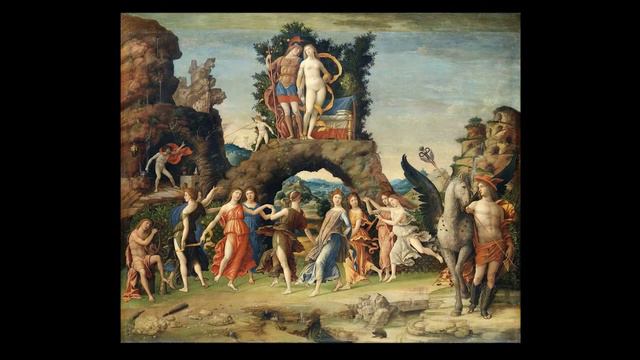 Bartolomeo Tromboncino & Franciscus Bosseniensis: Suspir io themo 0:06 Bosseniensis' arrangement for voice and lute 2:36 Instrumental arrangement (cornetto, harp) This frottola survives only in this reduced form for solo vocalist and lute accompaniment. The original 3 or 4 part version by Tromboncino has not been found although it is not difficult to guess the original notes from the lute intabulation. Like many of Tromboncino's compositions from this period, it was probably dedicated to his famous patron Isabella d'Este. Text: Suspir io themo ma piu theme il core Che de doi mali voi cason sereti Luno de scoprir lo occulto ardore Laltro che el pecto mio accenderiti Chel vento un poco ascosto fa magiore E acceso el vede ognun tal vui fareti Donque lassate hormai poi che mia sorte Voi che tacendo o no io corra amorte Translation (please help with any corrections): I am afraid to breath, but my heart is even more afraid of two bad things you keep secret: The one to find the hidden passion The other which lights up my breast That a little breeze further inflames And I reach ... each one as you do Therefore leave me now to my lot Whether you are silent or not, I speed to my death Description of photos: 1. "Suspir io themo" complete score for voice and lute, Franciscus Bosseniensis, ed. O. Petrucci, 1511 2. Sala del Tesoro, Palazzo Costabili, Ferrara, the stomping grounds of Tromboncino's patron Isabella d'Este 3. Isabella d'Este and sister Beatrice with lute, detail from #3 above, Garofalo, c1506 4. Musical seal of Isabella d'Este, Studiolo, Ducal Palace, Mantua 5. Parnassus, Andrea de Mantegna, 1497, originally displayed in Isabella d'Este's Studiolo in Mantua 6. Cornetto player, detail from "Finding Moses," Bonifazio de Pitati, c1530 7. Isabella d'Este bust, Gian Cristophoro Romano, c1500 8. Insignia of Isabella d'Este (Estensis), Studiolo, Ducal Palace, Mantua 9. Ceiling of Isabella d'Este's grotta, note the musical symbolism 10. Intarsia of a lute and two cornetti, Ducal Palace of Gubbio, Guiliano da Majano, c1480